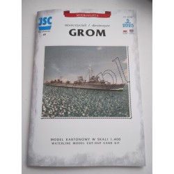 ORP Grom was a modern Polish Navy destroyer, built in the United Kingdom and commissioned in 1937. During World War II, she took part in the Norwegian campaign, supporting Allied operations near Narvik. She was sunk on May 4, 1940, during a German air raid in the Rombakken fjord, with over 50 crew members lost. The booklet contains a number of optional parts which improve the model's final appearance.