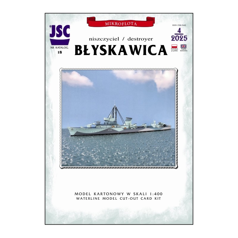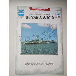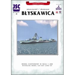 ORP Błyskawica is a Polish destroyer of the Grom class, launched in 1936 in the United Kingdom. During World War II, she distinguished herself in the evacuation of Dunkirk, the Battle of the Atlantic, and the Battle of Ushant. After the war, she served in the Polish Navy, and since 1976 has been a museum ship in Gdynia — the oldest preserved destroyer in the world. The booklet contains a number of optional parts which improve the model's final appearance.