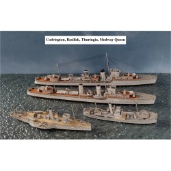 Codrington was an A-class destroyer leader. Basilisk was a B-class destroyer. Medway Queen was a pre-war paddle steamer rebuild as a minesweeper when the WWII broke. Medway Queen is well known as "Heroine of Dunkirk" - she saved ca. 7000 soldiers. Thuringia was an anti-submarine trawler.