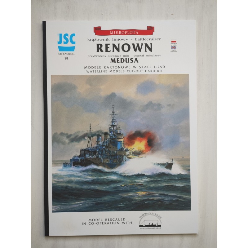 Model przeskalowany. Renown zbudowany w 1916 roku i zmodernizowany w 1939 roku był uczestnikiem wielu walk i potyczek na wszystkich oceanach. Medusa ma równie długą historię, choć nieco mniej znaną.