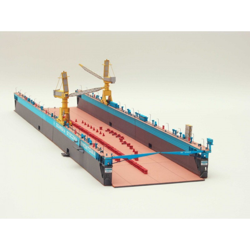 Model przeskalowany. Dok pływający służy do przeprowadzania przeglądów, remontów i przebudów statków.
