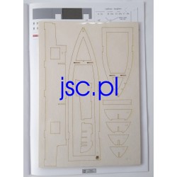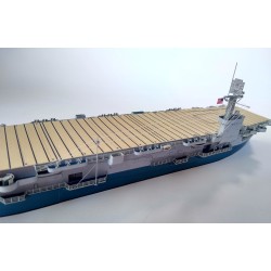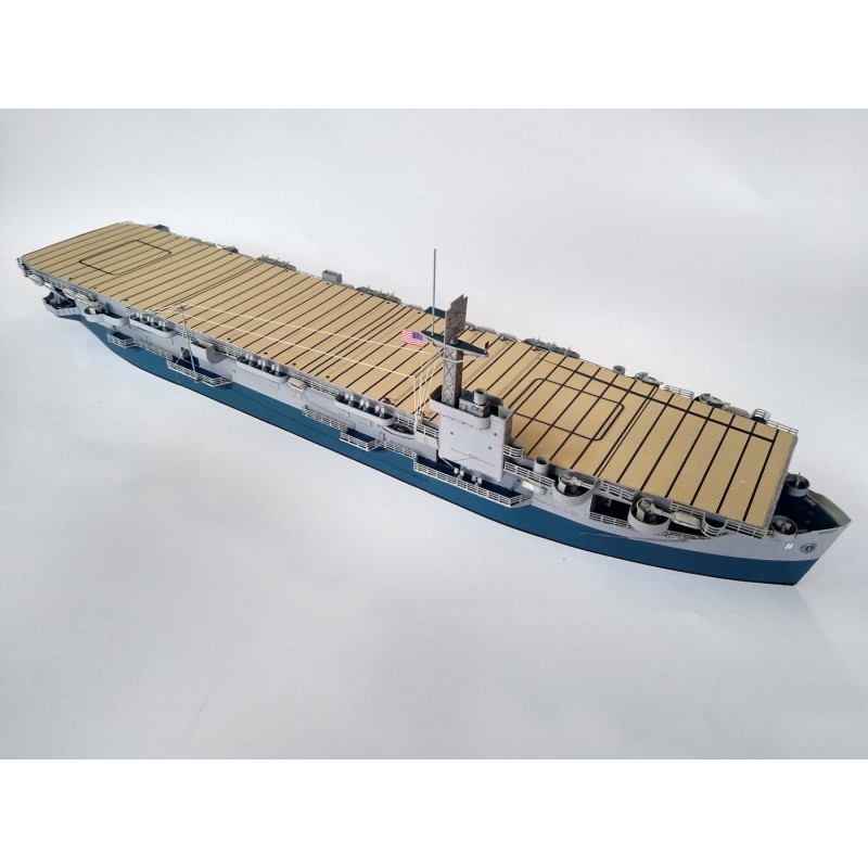 Informacje dodatkowe: Model zawiera laserowo wycięty szkielet kadłuba oraz samoloty: 12 x TBF Avenger, 6 x F4F Wildcat.