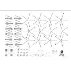 Zestaw zawiera żurawiki, anteny, elementy samolotów, wirniki helikopterów, itp.