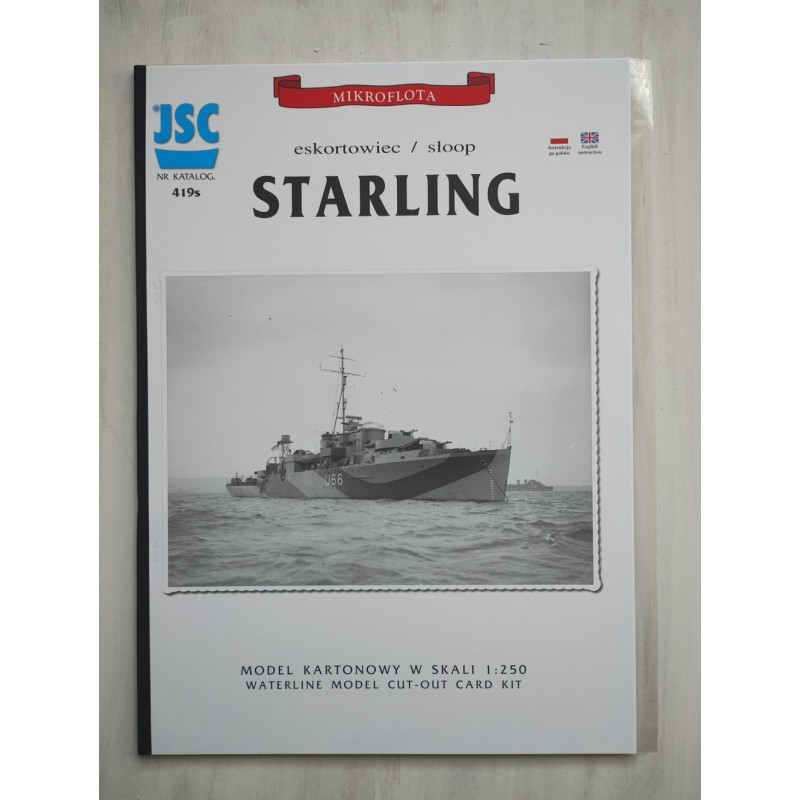 Model przeskalowany. Okręt typu Modified Black Swan. Starling zatopił w czasie II Wojny Światowej 14 U-bootów - najwięcej ze wszystkich okrętów Royal Navy. Zeszyt zawiera dużą ilość opcjonalnych detali uplastyczniających model.