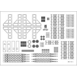 zestaw zawiera kratowe ramiona żurawi, ażurowe końce baszt, klatki schodowe, szyby wind, itp